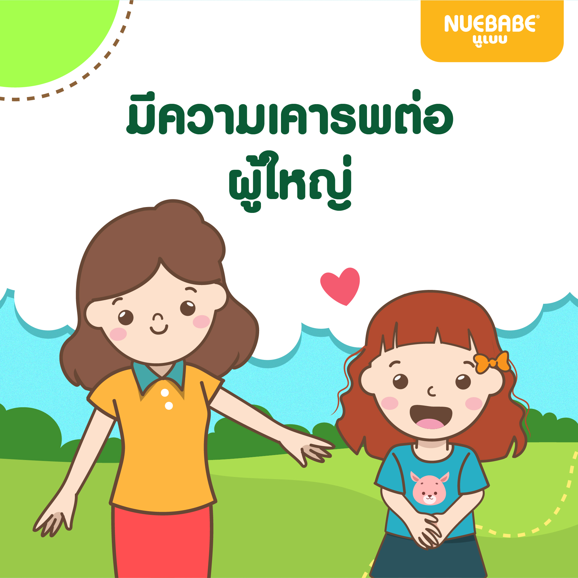 ไม่แสดงท่าทีที่ดูไม่น่ารัก กล่าวทักทายเมื่อพบเจอหน้า กล่าวขอบคุณเมื่อมีคนให้ของ และกล่าวขอโทษเมื่อเราทำผิดกับผู้ใหญ่จริง ๆ สิ่งนี้เป็นมารยาทที่ดีที่จะทำให้ผู้ใหญ่จดจำในตัวของเขามากขึ้น
