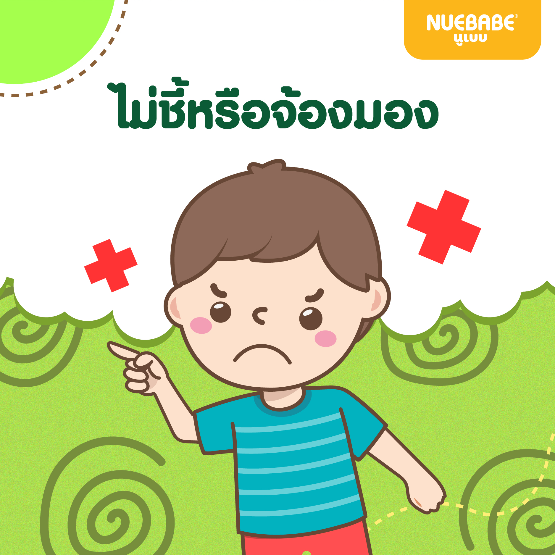 การชี้หรือจ้องมองบ่อย ๆ นานเกินไป อาจทำให้อีกฝั่งเข้าใจผิดจนเกิดความไม่พอใจได้ ต้องสอนให้เขาเข้าใจอารมณ์ของผู้อื่นด้วย โดยแสดงท่าทางด้วยการผายมือแทน